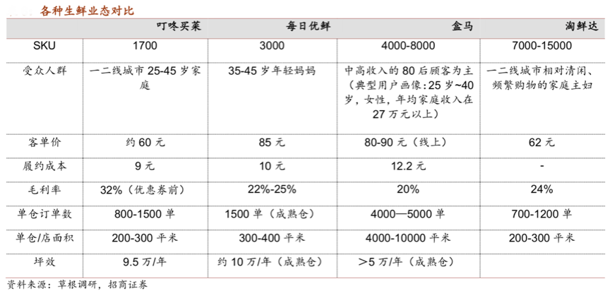 根據(jù)草根調(diào)研、招商證券等綜合資訊顯示,各種生鮮業(yè)態(tài)多樣,最近興起的“生鮮前置倉”、“社區(qū)拼團”等生鮮新零售模式,其代表品牌如叮咚買菜、每日優(yōu)鮮等,無不強調(diào)前端的人群鎖定,積極拓寬生鮮消費人群,提升生鮮產(chǎn)品客單價,積極聚合消費,提升倉儲周轉(zhuǎn)率,創(chuàng)新生鮮新零售模式策劃運營,推進數(shù)字品牌營銷策劃。