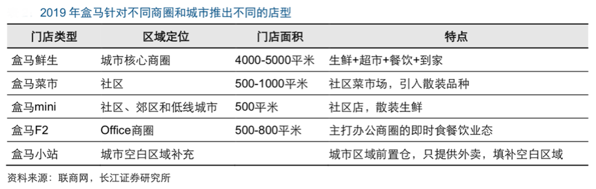 據(jù)聯(lián)商網(wǎng)、長(zhǎng)江證券研究所等綜合資訊表明,盒馬鮮生單店 SKU 超過 1.2 萬個(gè),并為 3 公里 范圍內(nèi)的用戶提供30 分鐘免費(fèi)送達(dá)的服務(wù),開業(yè) 1.5 年以上成熟門店 單店日均線上訂單 1200 單,線上銷售占比超過 60%,客單價(jià)接近 100 元, 日均營(yíng)收超 80 萬元,坪效 5 萬元,是傳統(tǒng)超市的 3 倍,單店盈利能力 出眾,截至目前,盒馬已經(jīng)在全國(guó) 21 個(gè)城市開出 138 家門店,同時(shí)其針對(duì)不同商圈和城市開出不同的店型,覆蓋更多的消費(fèi)者。