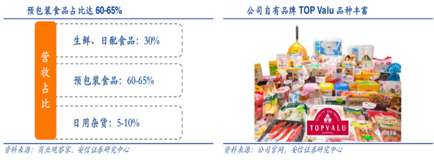 經(jīng)典案例:據(jù)商業(yè)觀察家、安信證券研究中心、MY BASKET公司官網(wǎng)等綜合資訊顯示,MY BASKET經(jīng)營的品項數(shù)在 2000-3000 個左右,高復購率和家庭消費商品占比大,并且精選每個品類的“NO.1 的品牌暢銷品”和永旺自有品牌“TOP VALU”的 商品。據(jù)商業(yè)觀察家數(shù)據(jù)顯示,當前 TOP VALU 在公司品項數(shù)占比 40%,銷售額占比50%,門店整 體銷售占比也在 30%左右;從各品類的銷售占比上看,生鮮+日配共占 30%,預包裝食品 可達 60-65%,日用雜貨占 5-10%。