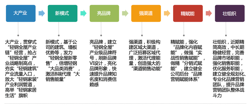 “六步致勝”之一:大產(chǎn)業(yè),貫穿式“輕鋼全屋產(chǎn)業(yè)鏈”經(jīng)營(yíng),搶占“輕鋼全屋”產(chǎn)業(yè)戰(zhàn)略制高點(diǎn),夯實(shí)“輕鋼建筑”產(chǎn)業(yè)流量入口,放大“輕鋼家裝”產(chǎn)業(yè)利潤(rùn)管道,高舉“輕鋼家居生活”旗幟