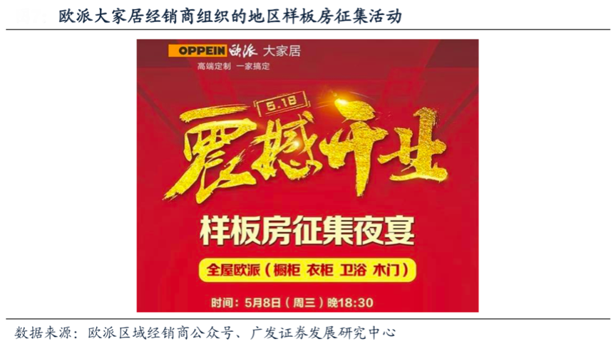 經典案例:據(jù)歐派區(qū)域經銷商公眾號、廣發(fā)證券發(fā)展研究中心等綜合資訊表明,近年來,索菲亞、全友、歐派都先后在不同城市推出小區(qū)樣板房征集活動,以拎包入住的便利、相對較低的裝修費用與一筆不菲的租金去獲取愿意與其合作的業(yè)主,并在與業(yè)主商定參觀周期后利用包含品牌自身多品類產品的樣板房去接觸小區(qū)內其他潛在客戶,拓寬自身消費者接觸面積,增加客流。