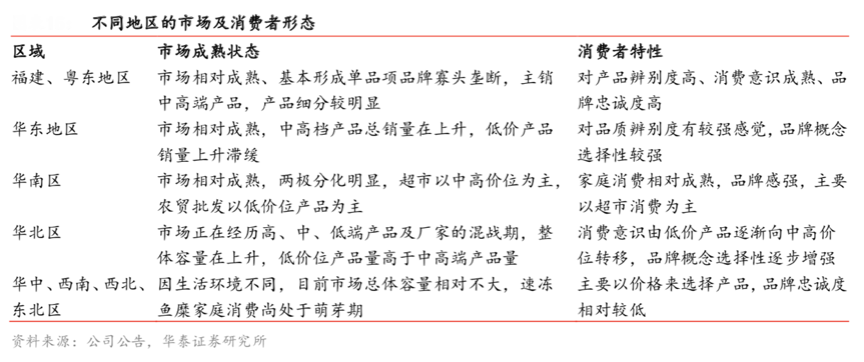 經(jīng)典案例:根據(jù)公司公告、華泰證券等綜合資訊表明,不同地區(qū)的市場及消費(fèi)者形態(tài)各異,華東地區(qū)是安井食品的根據(jù)地,市場成熟度較高,市場規(guī)模處于穩(wěn)定增長階段,是其重點(diǎn)市場,匹配區(qū)域市場進(jìn)行“品牌化行銷”。