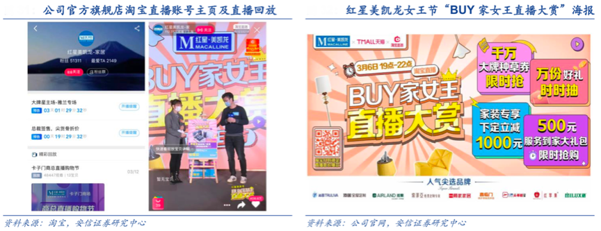 經(jīng)典案例:根據(jù)淘寶網(wǎng)、安信證券研究中心等綜合資訊表明, 2020 年 3 月 6 日,紅星美凱龍女王節(jié)“BUY家女王直播大賞”的淘寶直播間中,紅星美凱龍協(xié)同 6 城線下分會(huì)場(chǎng),顧家、喜臨門、雅蘭、索菲亞、芝華仕、頂固、沁園、米蘭之窗、紅蘋果等 9 大家居品牌亮相紅星美凱龍?zhí)詫氈辈ラg,當(dāng)晚直播間實(shí)時(shí)觀看人數(shù)超過(guò) 112 萬(wàn),實(shí)現(xiàn)商品點(diǎn)擊超 5.4 萬(wàn)次,家具爆款下訂 17400 單,“服務(wù)到家”居家保潔 業(yè)務(wù)收獲 2143 個(gè)訂單,“紅星美凱龍網(wǎng)家裝平臺(tái)”家裝業(yè)務(wù)達(dá)成 3174 個(gè)訂單,極大提升了紅星美凱龍的線上線下互動(dòng)價(jià)值。
