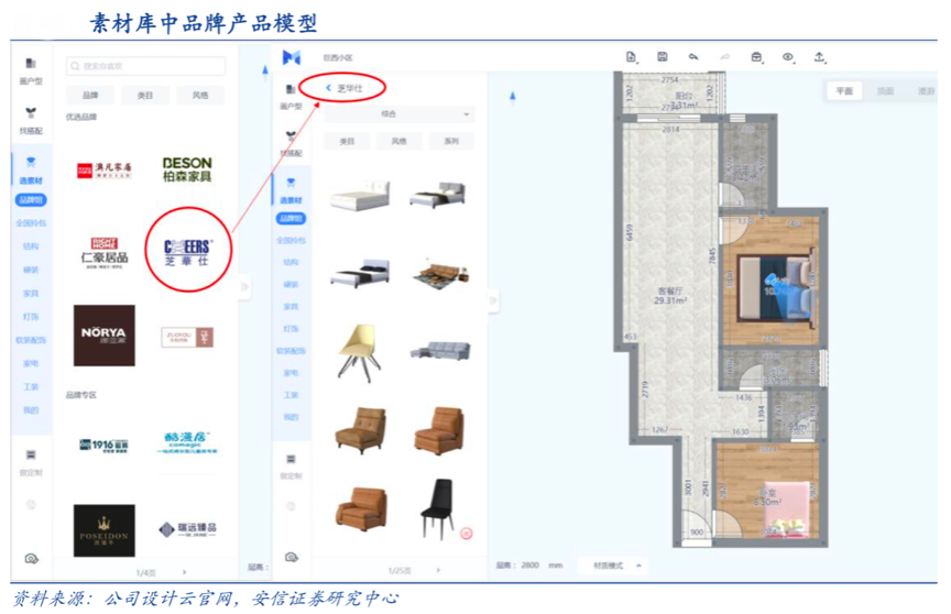 經(jīng)典案例:根據(jù)公司官網(wǎng)、安信證券研究中心等綜合資訊表明,紅星美凱龍“設(shè)計(jì)云”提供全景式線上家裝設(shè)計(jì)服務(wù),公司與“房天下”線上房地產(chǎn)家居專業(yè)網(wǎng)絡(luò)平臺(tái)達(dá)成合作,實(shí)現(xiàn)精 準(zhǔn)營(yíng)銷,提升轉(zhuǎn)化率。并在 2019 年 6 月,其推出了“1+N”模式的生態(tài)鏈平臺(tái),以城市大家居體驗(yàn)館、小區(qū)樣板間拎包入住、社區(qū)服務(wù)店的全場(chǎng)景滲透式服務(wù)形成精裝修“拎包入 住”業(yè)務(wù)的體系化服務(wù),從開發(fā)商、設(shè)計(jì)、施工到服務(wù)體驗(yàn)全流程滿足。