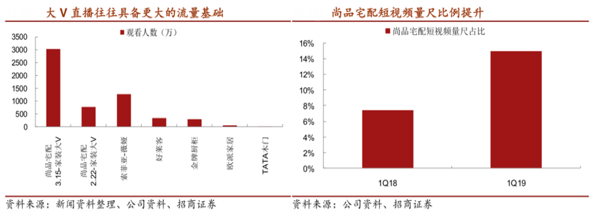 縱觀國(guó)內(nèi)家居新零售直播現(xiàn)狀,我們會(huì)發(fā)現(xiàn),企業(yè)級(jí)大 V 可通過(guò)短視頻、課堂類(lèi)直播的形式與消費(fèi)者形成持續(xù)性互動(dòng),以專(zhuān)業(yè) IP 的形象獲得消費(fèi)都認(rèn)可,在家居直播中占據(jù)優(yōu)勢(shì)競(jìng)爭(zhēng)地位。根據(jù)新聞資料整理、公司資料及招商證券等綜合資訊表明,大V直播具備更大的流量基礎(chǔ),尚品宅配2019年第1季度通過(guò)短視頻(含直播)的量尺占其線(xiàn)上量尺比例已超過(guò)15%,同比去年翻番。同時(shí)由于自主培養(yǎng)大 V 對(duì)企業(yè)的互聯(lián)網(wǎng)運(yùn)營(yíng)能力要求更高,目前新居網(wǎng)MCN近乎壟斷了家居業(yè)頭部 IP 資源,家居直播競(jìng)爭(zhēng)壓力加大。