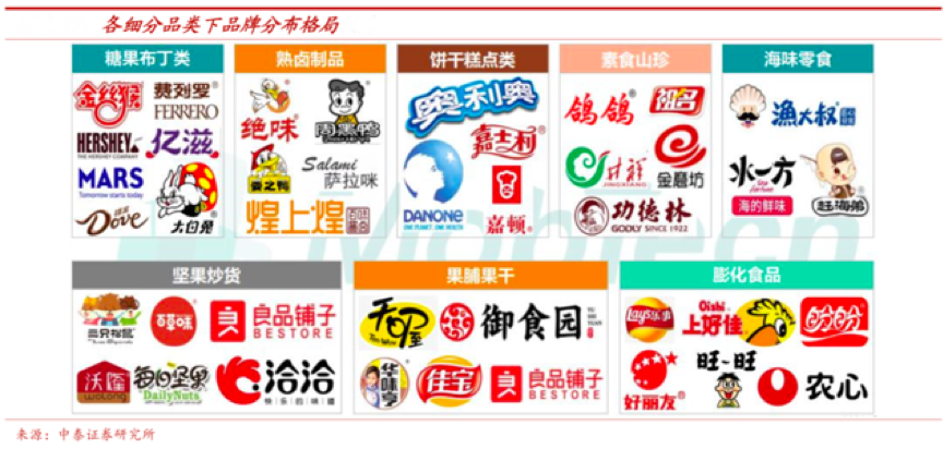 “全品類擴(kuò)張”是休閑食品企業(yè)發(fā)展的“關(guān)鍵性成長(zhǎng)路徑”,亮化多元化食品品類,刷新復(fù)合式休閑食品組合,點(diǎn)亮休閑食品消費(fèi)價(jià)值,做“細(xì)分領(lǐng)域第一品牌”更具“產(chǎn)業(yè)戰(zhàn)略價(jià)值”。根據(jù)中泰證券研究所等綜合資訊表明,休閑食品各細(xì)分品類下品牌分布格局相對(duì)松散,三只松鼠、良品鋪?zhàn)?、百草味等龍頭近年來正在積極進(jìn)行全品類擴(kuò)張,而大多細(xì)分品牌則仍處于聚焦主營(yíng)產(chǎn)品的大單品模式發(fā)展階段,整體而言各細(xì)分品類下的品牌分布格局仍較為分散。