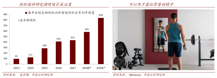 根據(jù)Mirror Co.、中金公司研究部等綜合資訊表明,在銷售方面,支持 AR/VR 的交互式虛擬購物(例如 Lululemon 以 5 億美元收購了 居家健身平臺(tái) Mirror Co.)雖然仍處于早期階段,但有望重新定義線上零售并將消費(fèi)觸點(diǎn)從店內(nèi)擴(kuò)展到人們家里,從而形成“服務(wù)顧客”的新方式。