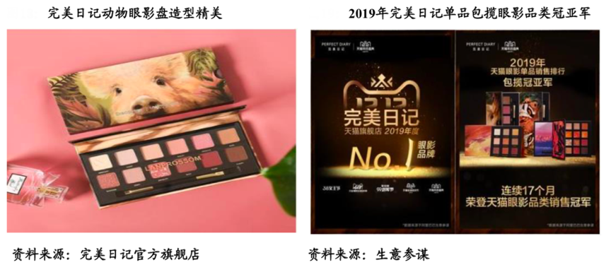 經(jīng)典案例:根據(jù)完美日記官方旗艦店、開源證券研究所、生意參謀等綜合資訊表明,完美日記的明星產(chǎn)品動(dòng)物眼影盤,色彩靈感來源于宇宙星系,配色兼具未來時(shí)尚與實(shí)用日常,于2020年雙十一銷售量超50萬。2019年完美日記單品包攬眼影品類冠亞軍。完美日記明星產(chǎn)品眼影盤銷售成績亮眼,進(jìn)一步通過與Discovery、李佳琦等IP進(jìn)行聯(lián)名合作擴(kuò)大影響力,在2019年包攬?zhí)熵堁塾皢纹菲奉愪N量冠亞軍。