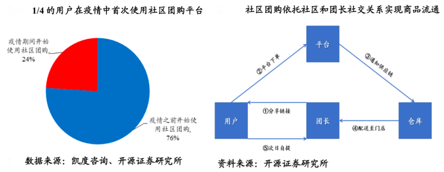 經(jīng)典案例:根據(jù)凱度咨詢、開源證券研究所等綜合資訊表明,根據(jù)凱度數(shù)據(jù)統(tǒng)計(jì),有1/4的用戶在疫情中首次使用社區(qū)團(tuán)購(gòu)平臺(tái)。隨著互聯(lián)網(wǎng)巨頭相繼加碼入局,社區(qū)團(tuán)購(gòu)行業(yè)也迎來(lái)加速發(fā)展,生鮮成為線下超市經(jīng)營(yíng)關(guān)鍵品類,到家需求快速增長(zhǎng)。