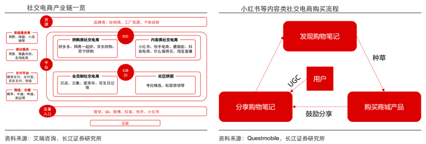 經(jīng)典案例:根據(jù)艾瑞咨詢、Questmobile、長江證券研究所等綜合資訊表明,內(nèi)容型社交電商以意見領(lǐng)袖的口碑為流量入口,通過圖文帖子、直播、短視頻等豐富的形式,通過購物攻略、分享導(dǎo)購等與購物相關(guān)的內(nèi)容社區(qū)吸引用戶,用戶在觀看這些內(nèi)容時可以直接在平臺內(nèi)或通過鏈接跳轉(zhuǎn)到電商平臺進行購買。