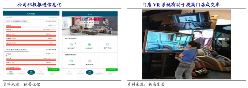 經(jīng)典案例:根據(jù)德普優(yōu)化、新浪家居等綜合資訊表明,敏華控股公司近年積極在門店推行 CRM 系統(tǒng)和 VR 系統(tǒng)。其經(jīng)銷商通過 CRM 系統(tǒng)可以實(shí)時分析門店有效體驗數(shù)、轉(zhuǎn)化率和客單價這三個指標(biāo),從而經(jīng)銷商可以有針對性地提升門店經(jīng)營效率。VR 系統(tǒng)則方便消費(fèi)者根據(jù)自家戶型和裝修風(fēng)格,電子化立體展示沙發(fā)購買效果,促進(jìn)消費(fèi)者購買,從而提高客流有效轉(zhuǎn)化率。