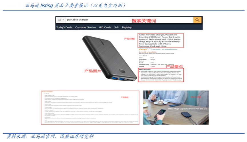 經(jīng)典案例:根據(jù)Amazon、wind、國盛證券研究所等綜合資訊表明,安克創(chuàng)新目前擁有超 1000 個 SKU,并憑借多年運營積累了一系列擁有高星級評分、多評論數(shù)的 listing,因此可以通過產(chǎn)品組合思維快速推爆。并可以通過listing 翻新的方式使新產(chǎn)品直接獲得原產(chǎn)品的星級評分和評論數(shù),縮短最初排名晉升時長、提升自然流量,確保新品在亞馬遜平臺有一定的曝光量,并利用站內(nèi)、站外引流進(jìn)行前期運營推廣。