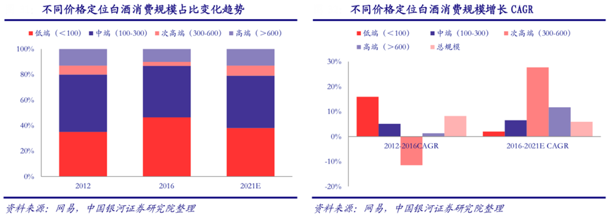 經(jīng)典案例:根據(jù)網(wǎng)易、中國銀河證券研究院等綜合資訊表明,從不同價(jià)格帶白酒未來的發(fā)展?jié)摿砜?,高端和次高端產(chǎn)品將成為行業(yè)的增長主力。受