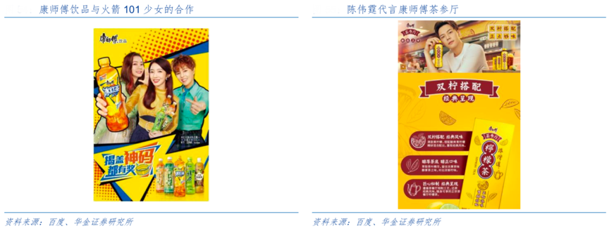 經(jīng)典案例:根據(jù)百度、華金證券等綜合資訊表明,康師傅一方面通過(guò)新營(yíng)銷方式鞏固核心大單品,包括新口味、IP 合作、促銷等。另一方面向中高價(jià)飲品進(jìn)軍,2019 年 6 月推出名為“茶參廳”檸檬茶,主打“雙檸搭配 正點(diǎn)港味”,突出港式的經(jīng)典檸檬茶風(fēng)味,通過(guò)當(dāng)紅明星陳偉霆代言,設(shè)計(jì)不同規(guī)格,獲得消費(fèi)者的青睞。