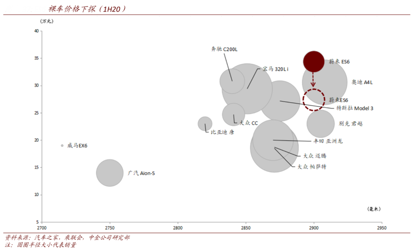 經(jīng)典案例:根據(jù)汽車之家、乘聯(lián)會(huì)、中金公司研究部等綜合資訊表明,蔚來汽車已于 2020 年 8 月推出Baas(Battery as a Service)服務(wù),即消費(fèi)者可以只購(gòu)買裸車(無電池),后期每月支付一定費(fèi)用以租賃電池,這使得購(gòu)買價(jià)格直接下降,有利于采購(gòu)平價(jià)。Baas 方案可使得 ES6 補(bǔ)貼后裸車價(jià)格直接下探至 27.4 萬元,大大提升了產(chǎn)品的市場(chǎng)競(jìng)爭(zhēng)力。