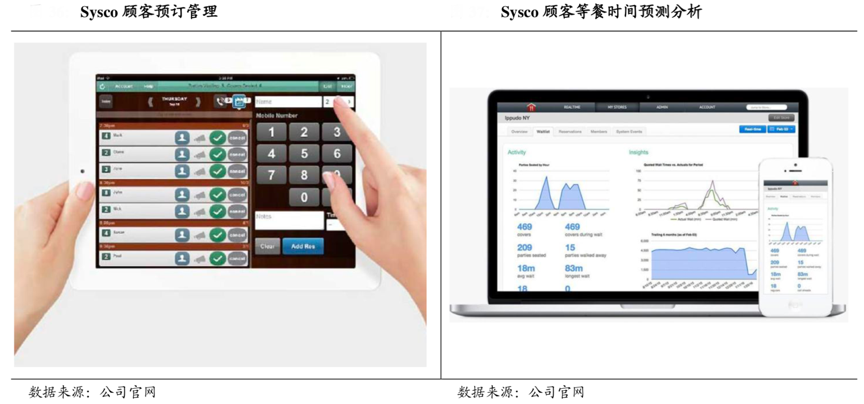 經(jīng)典案例:根據(jù)公司官網(wǎng)、國泰君安證券研究等綜合資訊表明,Sysco 可與客戶共享來自專業(yè)餐飲調(diào)研機(jī)構(gòu)的數(shù)據(jù)信息,優(yōu)化餐飲品類,提高消費(fèi)者粘性。與客戶共享其自動(dòng)化設(shè)備研發(fā)成果,降低客戶食材處理的人力成本,為客戶提供菜單咨詢、烹飪食譜支持、人員培訓(xùn)等服 務(wù),提升客戶的經(jīng)營能力??蛻艨梢酝ㄟ^ MySysco 一站式采購、賬單支 付,還可以通過客戶管理系統(tǒng) CAKE 來數(shù)字化管理門店,該系統(tǒng)具有消 費(fèi)者在線預(yù)訂、記錄消費(fèi)者訪問歷史、預(yù)測等餐時(shí)間等功能。