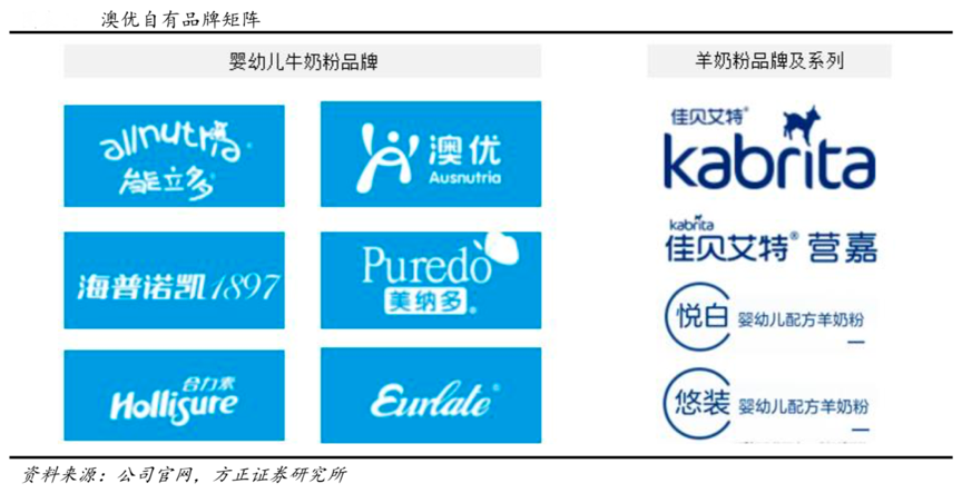 經(jīng)典案例:根據(jù)公司官網(wǎng)、方正證券研究所等綜合資訊表明,澳優(yōu)從創(chuàng)立以來成功孵化了多個(gè)品牌:(1)羊奶粉:公司 2011 年收購荷蘭海普諾凱,成功打造了核心大品 牌羊奶粉“佳貝艾特”,乳源和生產(chǎn)均在荷蘭。(2)牛奶粉:采用多品牌戰(zhàn)略,以品牌為業(yè)務(wù)單元發(fā)展了海普卡諾、 能力多、美納多等事業(yè)單元。2019 年佳貝艾特收入規(guī)模 29 億元,穩(wěn)居羊奶粉的第一品牌,根據(jù)海關(guān)數(shù)據(jù)在進(jìn)口羊奶粉總量中佳貝艾特占比高達(dá) 61%。