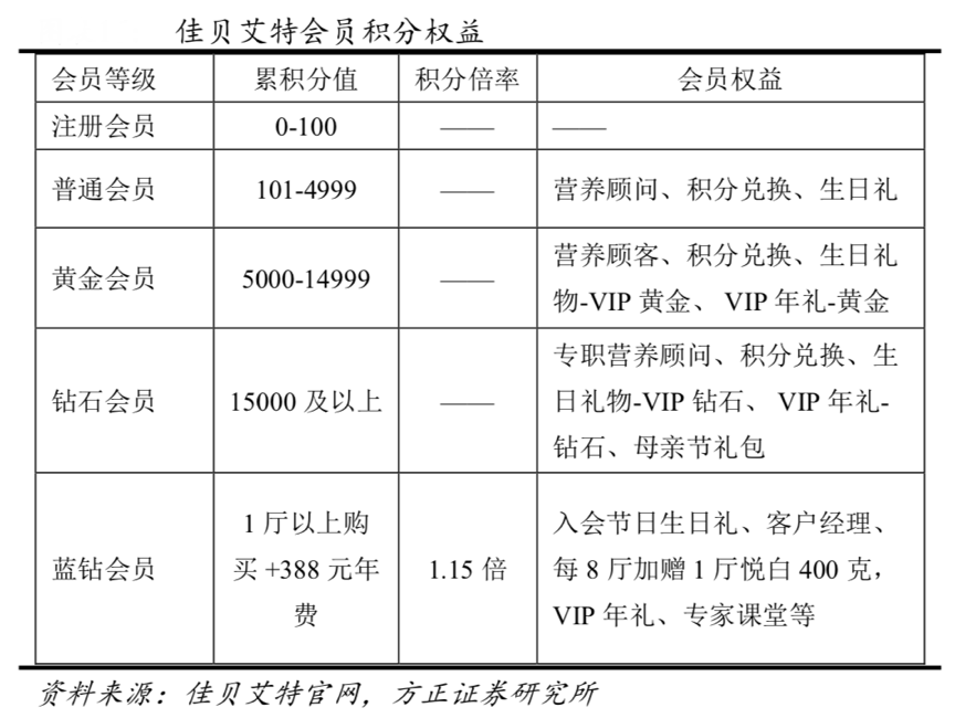 經(jīng)典案例:根據(jù)佳貝艾特官網(wǎng)、方正證券研究所等綜合資訊表明,澳優(yōu)多年深度經(jīng)營會(huì)員體系,深度合作線下門店,對(duì)所有用戶進(jìn)行積分管理制度。以深度合作的母嬰門店為核心入口,進(jìn)行會(huì)員數(shù)據(jù)的全 面收集,并基于數(shù)據(jù)進(jìn)行精準(zhǔn)營銷,營造社群分為,強(qiáng)化會(huì)員粘性,尤其是通過“媽媽圈”母嬰論壇創(chuàng)造口碑效應(yīng)。