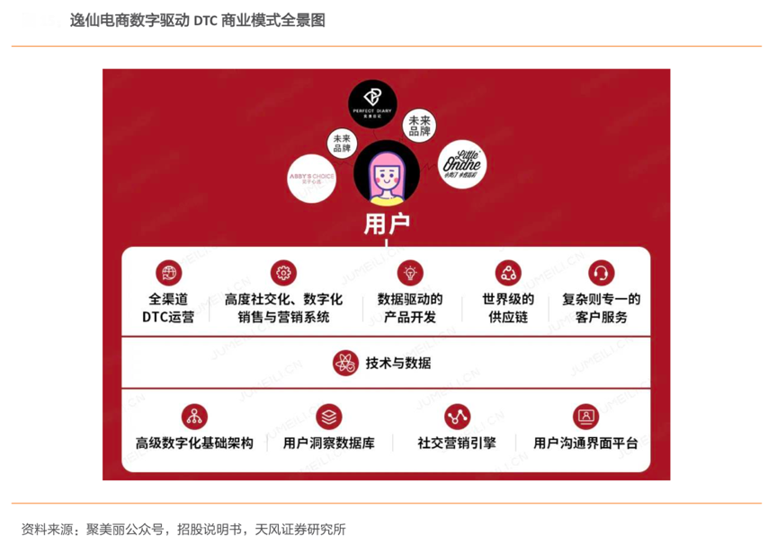 經(jīng)典案例:根據(jù)聚美麗公眾號、招股說明書、天風(fēng)證券研究所等綜合資訊表明,逸仙電商借助 DTC 商業(yè)模式直面消費(fèi)者,并有效借助 KOL 和明星等高度社交化的互動式營銷與客戶產(chǎn)生互動,收集有關(guān)客戶行為及偏好的數(shù)據(jù),挖掘出對客群的深刻見解,再借助強(qiáng)有力的后臺數(shù)據(jù)支撐、世界一流的供應(yīng)鏈保證和 DTC 全渠道營銷支持,快且有效地打造出暢銷品牌。