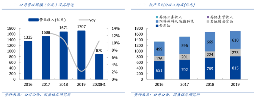 經(jīng)典案例:根據(jù)公司公告、國(guó)盛證券研究所等綜合資訊表明,益海嘉里公司2019年?duì)I收規(guī)模為 1707 億元,2016-19年 CAGR 為 8.5%。其營(yíng)收構(gòu)成以廚房食品為主,2019 年 廚房食品營(yíng)收 1088 億元,占整體收入比重 63.9%;其中食用油營(yíng)收 815.3 億元,占廚房食品收入的 75%以及整體收入的 48%左右。