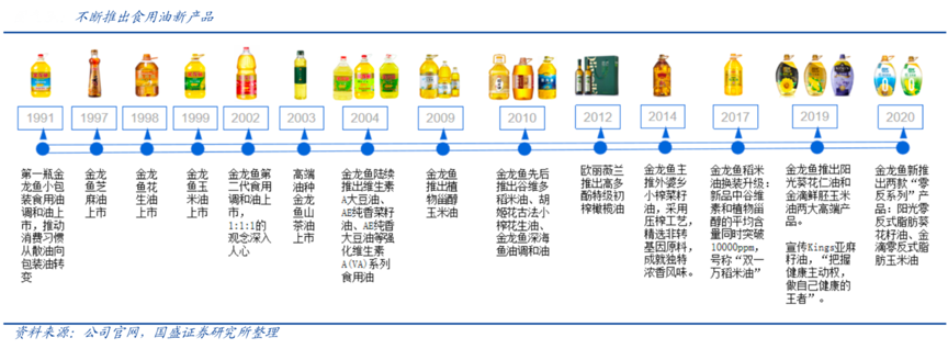 經(jīng)典案例:根據(jù)公司官網(wǎng)、國(guó)盛證券研究所等綜合資訊表明,益海嘉里不斷推出食用油新產(chǎn)品,2017年金龍魚“雙一萬”稻米油上市。該產(chǎn)品將稻米油中谷維素和植物甾醇的平均含量同時(shí)提升至 10000ppm,成功解決稻米油在加工過程中如何既保留營(yíng)養(yǎng)精華,又達(dá)到好的口感和色澤這一難題。