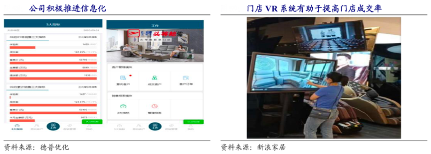 經(jīng)典案例:根據(jù)德普優(yōu)化、新浪家居、開源證券研究所等綜合資訊表明,敏華控股公司近年強化對門店的數(shù)字化建設,近年積極在門店推行 CRM 系統(tǒng)和 VR 系統(tǒng)。經(jīng)銷商通過 CRM 系統(tǒng)可以實時分析門店有效體驗數(shù)、轉化率和客單價這三個指標,從而經(jīng)銷商可以有針對性地提升門店經(jīng)營效率。VR 系統(tǒng)則方便消費者根據(jù)自家戶型和裝修風格,電子化立體展示沙發(fā)購買效果,促進消費者購買,從而提高客流有效轉化率。