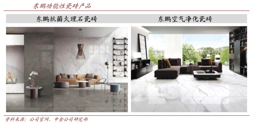 經(jīng)典案例:根據(jù)公司官網(wǎng)、中金公司研究部等綜合資訊表明,東鵬持續(xù)強調(diào)產(chǎn)品創(chuàng)新,將裝飾產(chǎn)品功能化,從“金花米黃”在國內(nèi)掀起瓷磚“全國一片黃”的消費浪潮,到洞石、原石、降醛、抗菌、防滑系列等健康瓷磚,引領(lǐng)行業(yè)進步,其產(chǎn)品在設(shè)計及創(chuàng)新上持續(xù)領(lǐng)先行業(yè)。
