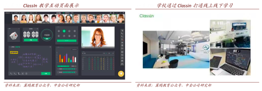 經(jīng)典案例:根據(jù)翼鷗教育公眾號(hào)、中金公司研究部等綜合資訊表明,翼鷗教育產(chǎn)品通過技術(shù)最大化的賦能于教學(xué),比如搭建的在線平臺(tái)能夠最大化地貼近線下討論式課堂:2020 年 8 月 ClassIn 行業(yè)獨(dú)家上線分組教學(xué)功能,學(xué)生可以分為 50 多個(gè)小組,每個(gè)小組擁有獨(dú)立的協(xié)作黑板和交流區(qū) 進(jìn)行小組討論;同時(shí),教師可自由切換任意小組進(jìn)行旁聽或點(diǎn)評(píng)。