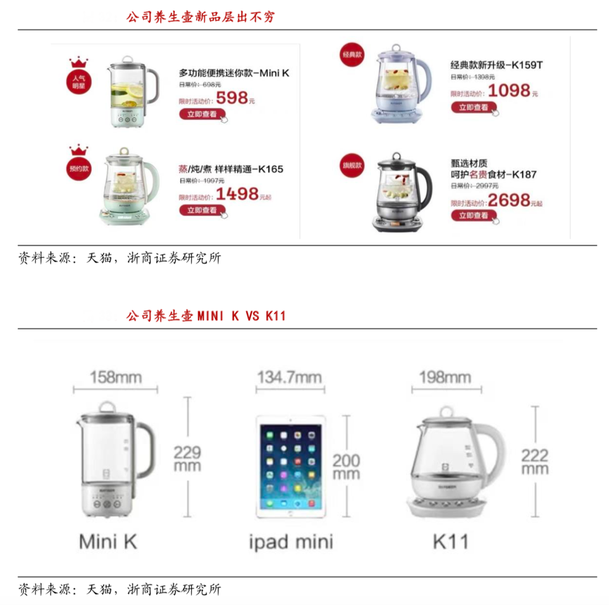 經(jīng)典案例:根據(jù)天貓、浙商證券研究所等綜合資訊表明,2020 年 6 月北鼎上新了新品養(yǎng)生壺,相比過往養(yǎng)生壺產(chǎn)品,其一體機設(shè)計更加便攜,但容量、功率有所下調(diào)。相比于同品牌其他養(yǎng)生壺,新養(yǎng)生壺在功能細(xì)分方面有所簡化,價格也有所下調(diào)。是同品牌養(yǎng)生壺的一半或三分之一。但產(chǎn)品一經(jīng)上線迅速成 為了北鼎熱銷產(chǎn)品,是線上店鋪銷量第一的養(yǎng)生壺。