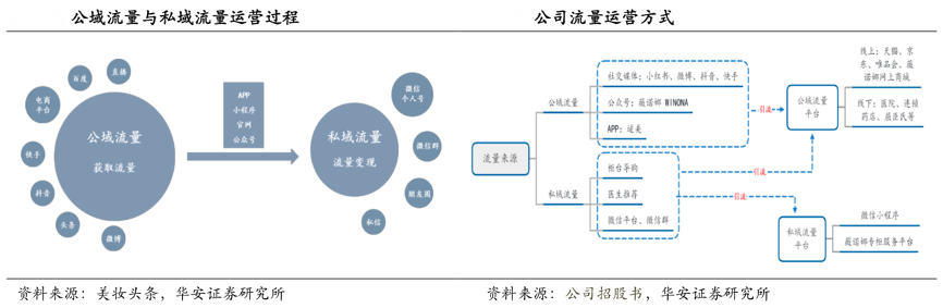 經(jīng)典案例:根據(jù)美妝頭條、公司招股書(shū)、華安證券研究所等綜合資訊表明,貝泰妮公司私域流量主要是通過(guò)微信小程序和薇諾娜專(zhuān)柜服務(wù)平臺(tái)進(jìn)行運(yùn)營(yíng),微信小程序流量來(lái)源是通過(guò)在微信平臺(tái)投放廣告和短視頻獲得新客戶關(guān)注公眾號(hào),此外公司會(huì)通過(guò)微信群進(jìn)行會(huì)員維護(hù),增強(qiáng)老客戶留存和復(fù)購(gòu)。