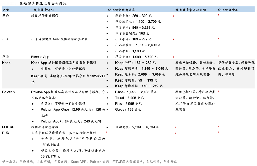 經(jīng)典案例:根據(jù)華為商城、小米商城、蘋果官網(wǎng)、Keep APP、Peloton官網(wǎng)、FITURE天貓旗艦店、B站官網(wǎng)、華泰研究等綜合資訊表明,平臺業(yè)務方面,Keep 平臺的會員滲透率由 2019 年 3.5%提高至 2023 年 10.7%, 2023 年會員及線上付費內(nèi)容年收入同比增長 11.4%至 10.0 億元。